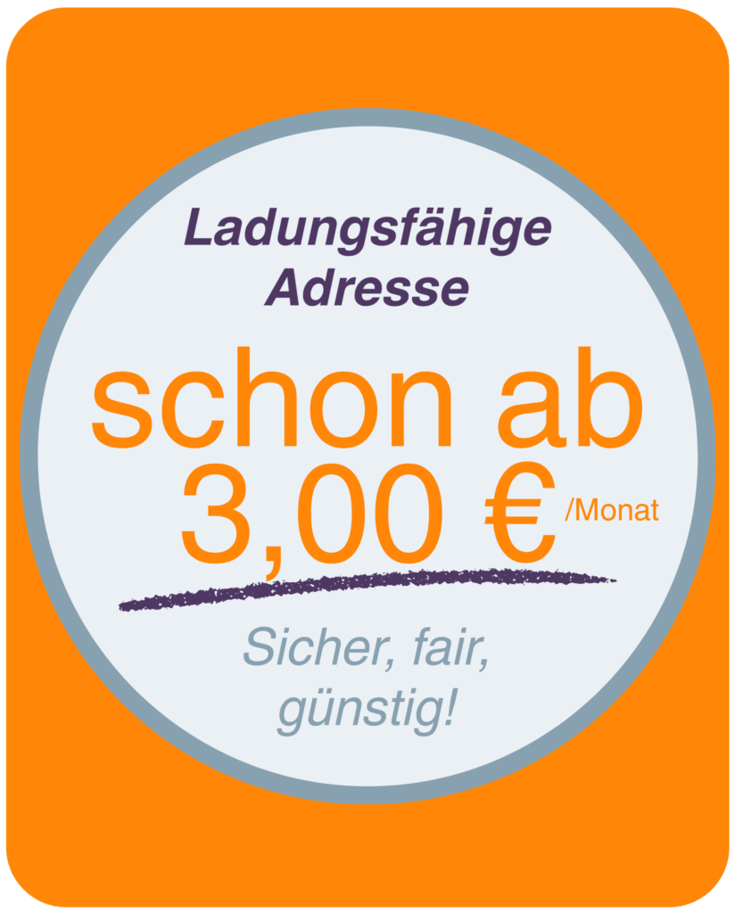 Nirgendwo musst du mit uns deine Privatadresse im Impressum preisgeben! Mit unserer ladungsfähigen c/o Adresse bist du durch uns sicher geschützt. Hole deine Postsendungen einfach bequem in deinem elektronischen E-Mail-Postfach an deinem elektronischen Endgerät oder in deinem heimischen Briefkasten ab, ohne teure Geschäftsräume mieten zu müssen. Dazu wurden wir in unserem Online-Unternehmen von Juristen eingehend beraten, um dir die entsprechende Sicherheit geben zu können.
